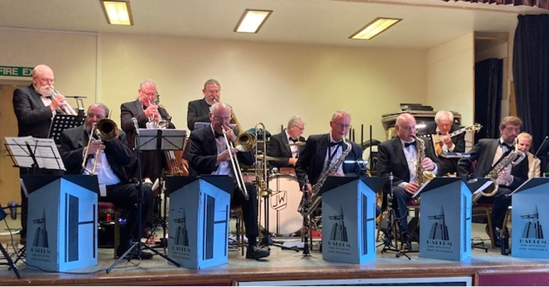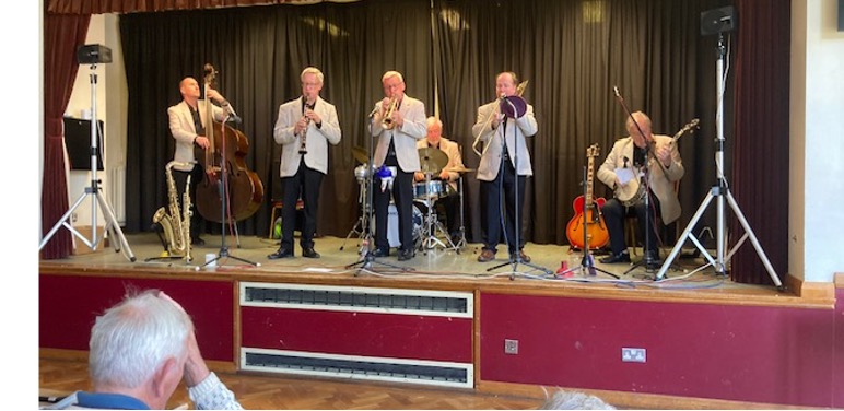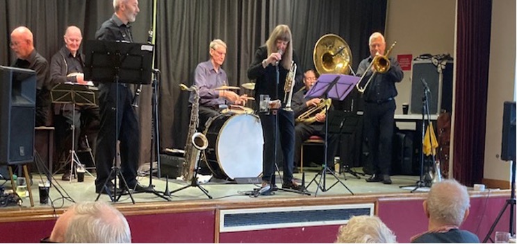 27 September 2025 – The Harlem Jazz Orchestra:  What a band – what a concert – smashing!  Bob Hunt (leader) was on trombone, Mike Henry on cornet, Wil Robinson and Charlie Manning on trumpet, Graham Woodhouse on valve trombone, Zoltan Sagi on clarinet and alto sax, Richard Exall on clarinet, alto sax and baritone sax, Art Toper on piano, John Irwin on guitar and banjo, Tomas Pederson on bass, John Watson on drums and Sarah Spencer was vocalist and compere. They opened with ‘King Kong’, and went on with ‘Harlem Romance’, ‘I Never Knew’, ‘Passing Time’, ‘Sweet and Lovely’, ‘’Leven-Thirty Saturday Night’, ‘Dinah’, ‘You’re Lucky To Me’, ‘Memories of Mish (short for Michelle)’, ‘Manchester Court’, ‘Have You Changed?’, ‘The Town Town Camp Meeting’, ‘Harlem Bound’, ‘Balti Nights in Birmingham’, ‘Mystery Song’, ‘Empty Chair’, ‘After You’ve Gone’, ‘When’, ‘Keep A Song In Your Soul’, ‘When a Black Man’s Blue’ and ‘Swanee Shuffle’.  This orchestra goes from strength to strength with authentic jazz classics from the 20s and 30s.  They rightly received a standing ovation.  We look forward to seeing them back with us again soon.